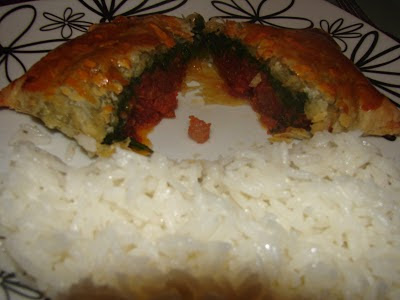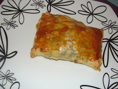 Depois de ter visto esta receita no blogue da Babette, fiquei intrigada com o sabor dos 2 ingredientes juntos... Tinha meia farinheira à espera de uso no frigo e uma placa de massa folhada a perder a validade no congelador, e decidi-me a experimentar, como prato principal..