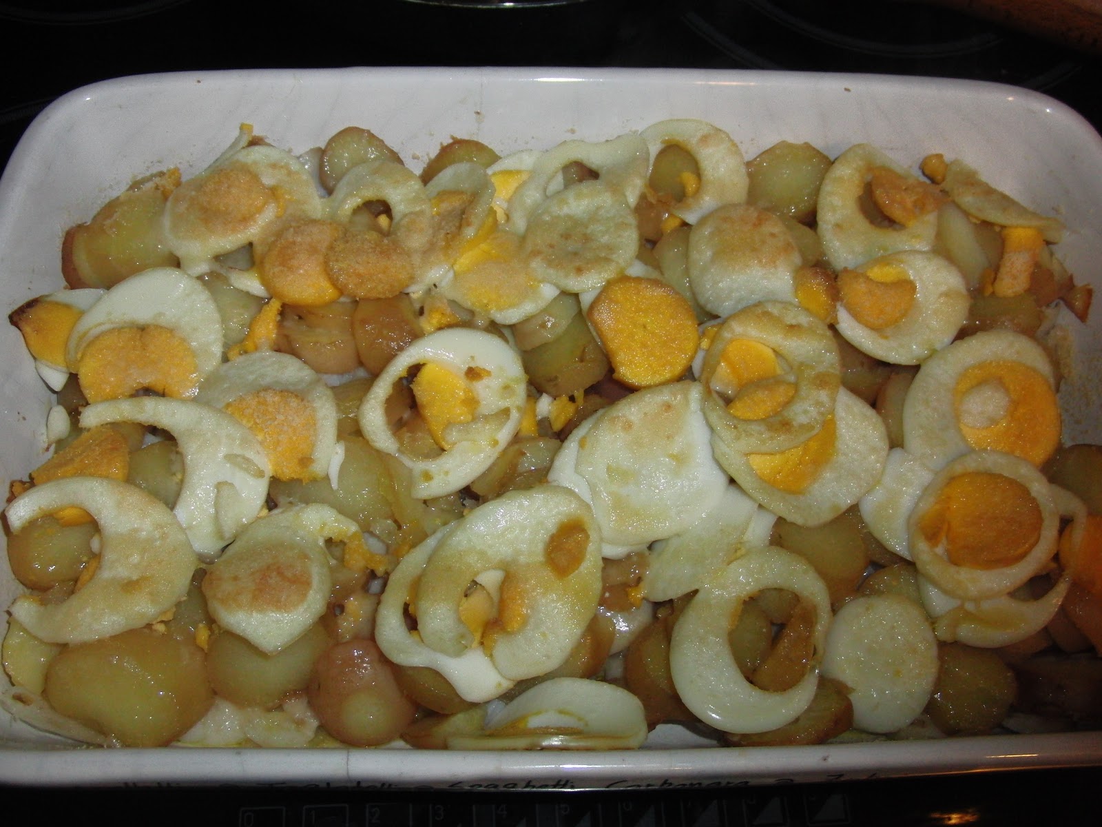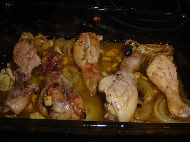 Num pirex colocar o alho e a cebola picados, os rolinhos e cobrir com o molho de soja, a vaqueiro líquida e o azeite, o vinho branco e levar ao forno por cerca de 20 min.