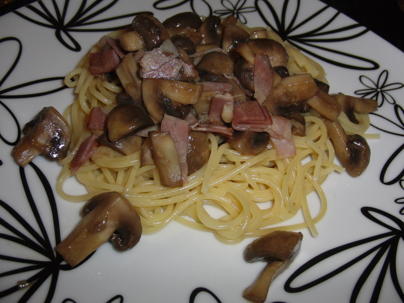 Tinhamos provado num restaurante, como entrada, uns cogumelos em vinho branco. Decidi experimentar, mas servi com massa, que como já sabem, é uma constante cá em casa...