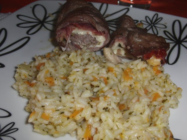 Bifes de vitela recheados com presunto, queijo e pleurotus
